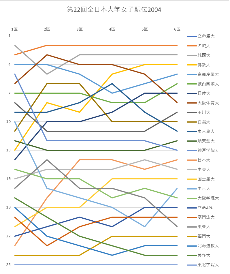 | 順位 | 大学 | 1区 | 2区 | 3区 | 4区 | 5区 | 6区 |