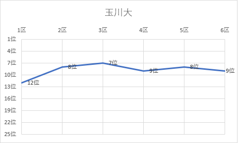 | 6区 | 9.0㎞ | 0:32:47 | 近藤 しのぶ | 4年 | 15位 | 2:24:56 | 21位 |
