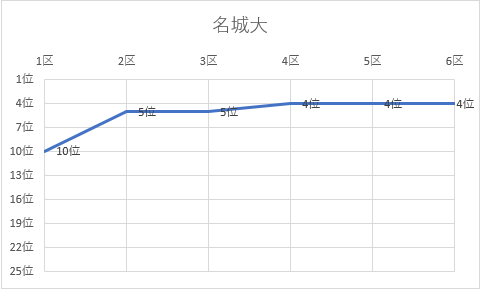 | 6区 | 9.1㎞ | 0:30:44 | 高橋 ゆかり | 4年 | 3位 | 2:13:16 | 5位 |