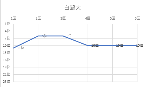| 6区 | 9.1㎞ | 0:33:35 | 島田 貴子 | 17位 | 2:22:11 | 20位 |