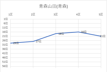 | 5区 | 5.0㎞ | 0:18:10 | 金森 由奈 | 2 | 55位 | 1:17:51 | 56位 |