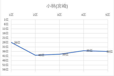 | 4区 | 3.0㎞ | 0:10:10 | 小林 桜空 | 2 | 39位 | 0:55:52 | 45位 |
