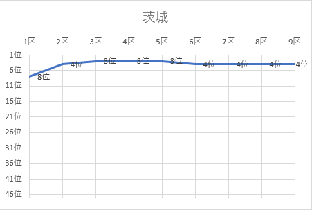 | 6区 | 4.0875㎞ | 0:15:36 | 宇野 恵美子 | 水戸三高 | 34位 | 1:29:49 | 4位 |