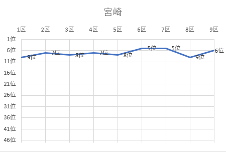 | 3区 | 3.0㎞ | 0:10:40 | 渡辺 なおみ | 宮崎工高 | 28位 | 0:45:57 | 8位 |