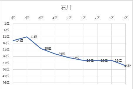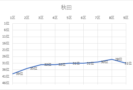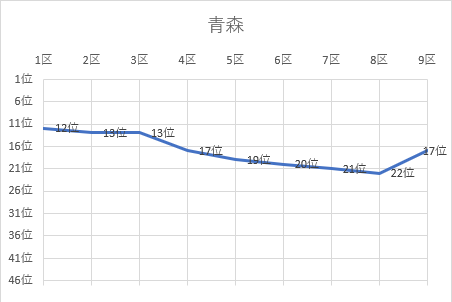 1位 京都 2位 千葉 3位 兵庫 4位 茨城 5位 東京 6位 宮崎 7位 神奈川 8位 福岡 9位 和歌山 10位 宮城 11位 大阪 12位 新潟 13位 愛知 14位 熊本 15位 静岡 16位 群馬 17位 青森 18位 岩手 19位 奈良 20位 山口 21位 岐阜 22位 福島 23位 三重 24位 北海道 25位 大分 26位 広島 27位 長野 28位 愛媛 29位 栃木 30位 富山 31位 秋田 32位 埼玉 33位 石川 34位 香川 35位 鳥取 36位 滋賀 37位 島根 38位 福井 39位 鹿児島 40位 長崎 41位 山梨 42位 山形 43位 佐賀 44位 徳島 45位 沖縄 46位 岡山 47位 高知