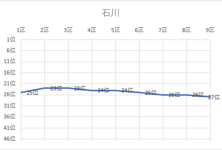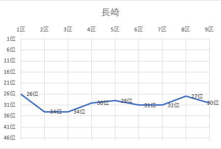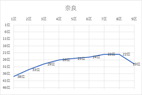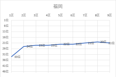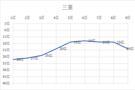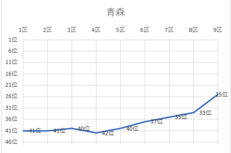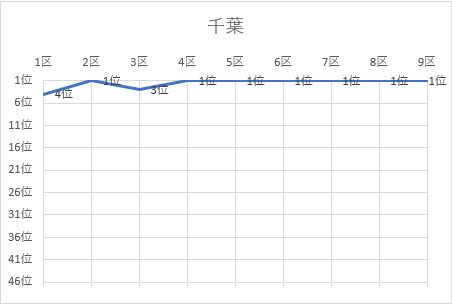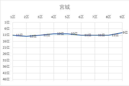 1位 千葉 2位 茨城 3位 鹿児島 4位 神奈川 5位 東京 6位 京都 7位 兵庫 8位 大阪 9位 宮城 10位 群馬 11位 山口 12位 静岡 13位 宮崎 14位 富山 15位 愛知 16位 熊本 17位 新潟 18位 福島 19位 大分 20位 三重 21位 福岡 22位 愛媛 23位 鳥取 24位 和歌山 25位 青森 26位 長野 27位 石川 28位 北海道 29位 奈良 30位 長崎 31位 岡山 32位 栃木 33位 佐賀 34位 埼玉 35位 山梨 36位 滋賀 37位 岐阜 38位 秋田 39位 広島 40位 島根 41位 山形 42位 香川 43位 福井 44位 徳島 45位 沖縄 46位 高知 47位 岩手