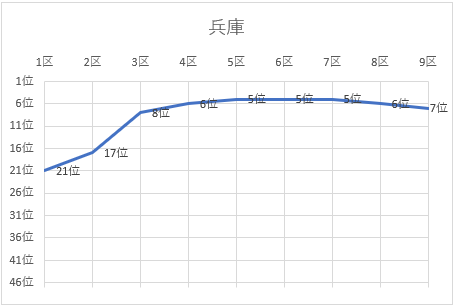 | 3区 | 3.0㎞ | 0:09:36 | 山野 恵美 | 加古川中部中 | 1位 | 0:45:11 | 8位 |