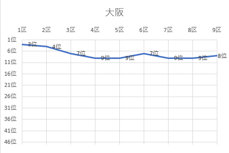 1位 京都 2位 千葉 3位 広島 4位 埼玉 5位 兵庫 6位 福岡 7位 東京 8位 大阪 9位 鹿児島 10位 神奈川 11位 熊本 12位 奈良 13位 宮城 14位 宮崎 15位 長野 16位 茨城 17位 栃木 18位 群馬 19位 石川 20位 岐阜 21位 愛知 22位 佐賀 23位 三重 24位 山口 25位 静岡 26位 和歌山 27位 徳島 28位 長崎 29位 大分 30位 北海道 31位 香川 32位 島根 33位 岡山 34位 愛媛 35位 福島 36位 滋賀 37位 高知 38位 山梨 39位 岩手 40位 新潟 41位 山形 42位 福井 43位 青森 44位 富山 45位 鳥取 46位 秋田 47位 沖縄