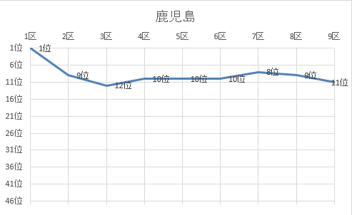 1位 神奈川 2位 兵庫 3位 大阪 4位 千葉 5位 静岡 6位 愛知 7位 群馬 8位 東京 9位 京都 10位 岡山 11位 鹿児島 12位 福岡 13位 長野 14位 三重 15位 埼玉 16位 長崎 17位 福島 18位 広島 19位 茨城 20位 岐阜 21位 山形 22位 栃木 23位 大分 24位 新潟 25位 愛媛 26位 富山 27位 岩手 28位 滋賀 29位 島根 30位 山梨 31位 宮崎 32位 和歌山 33位 熊本 34位 徳島 35位 佐賀 36位 鳥取 37位 北海道 38位 高知 39位 宮城 40位 福井 41位 石川 42位 青森 43位 山口 44位 秋田 45位 香川 46位 奈良 47位 沖縄