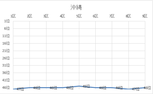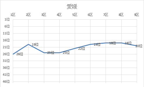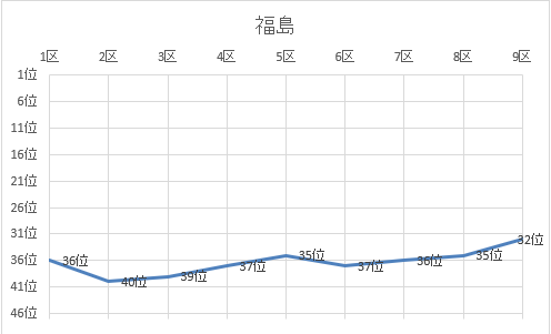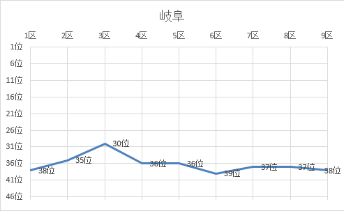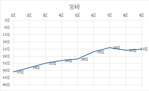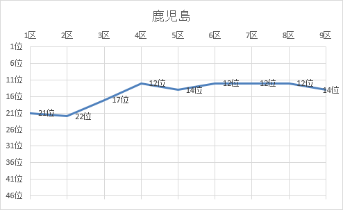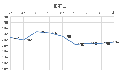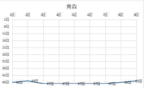 1位 愛知 2位 京都 3位 大阪 4位 兵庫 5位 千葉 6位 長野 7位 神奈川 8位 静岡 9位 東京 10位 岡山 11位 長崎 12位 福岡 13位 群馬 14位 鹿児島 15位 広島 16位 宮城 17位 大分 18位 埼玉 19位 山形 20位 愛媛 21位 宮崎 22位 茨城 23位 和歌山 24位 北海道 25位 熊本 26位 秋田 27位 山梨 28位 高知 29位 佐賀 30位 石川 31位 富山 32位 福島 33位 三重 34位 山口 35位 滋賀 36位 岩手 37位 新潟 38位 岐阜 39位 奈良 40位 栃木 41位 福井 42位 徳島 43位 香川 44位 鳥取 45位 青森 46位 沖縄 47位 島根