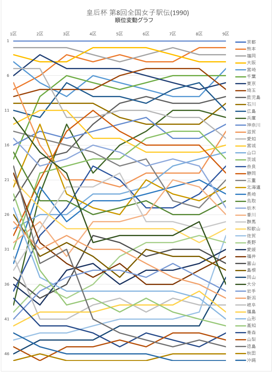 皇后杯第8回都道府県女子駅伝(1990)の結果、記録