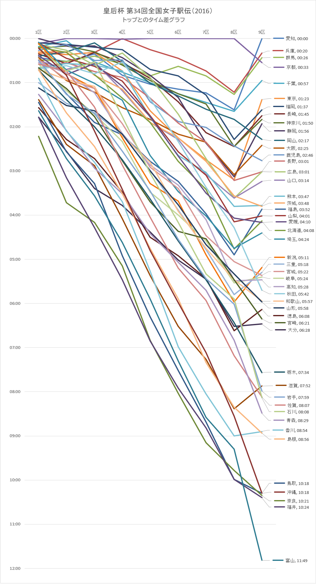 | 3 | 群馬 | 00:29 | 00:31 | 00:24 | 00:35 | 00:51 | 00:38 | 00:51 | 01:16 | 00:26 |