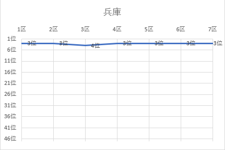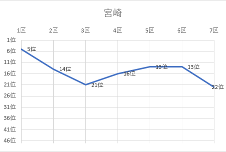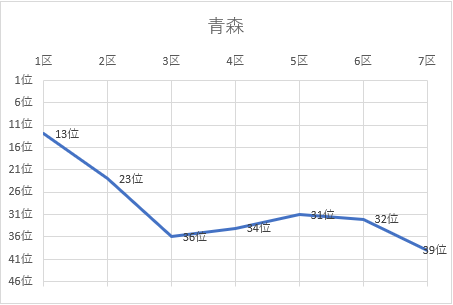 1位 宮城 2位 福島 3位 兵庫 4位 岡山 5位 群馬 6位 埼玉 7位 愛知 8位 千葉 9位 静岡 10位 神奈川 11位 大阪 12位 京都 13位 広島 14位 福岡 15位 鳥取 16位 山形 17位 鹿児島 18位 茨城 19位 熊本 20位 長野 21位 新潟 22位 宮崎 23位 岐阜 24位 栃木 25位 東京 26位 佐賀 27位 岩手 28位 北海道 29位 山口 30位 三重 31位 滋賀 32位 奈良 33位 沖縄 34位 高知 35位 山梨 36位 福井 37位 富山 38位 大分 39位 青森 40位 徳島 41位 愛媛 42位 秋田 43位 石川 44位 島根 45位 和歌山 46位 香川 47位 長崎