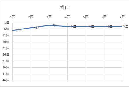 | 7区 | 13.0㎞ | 0:37:16 | 池田 勘汰(27) | 中国電力 | 3位 | 2:17:55 | 4位 |