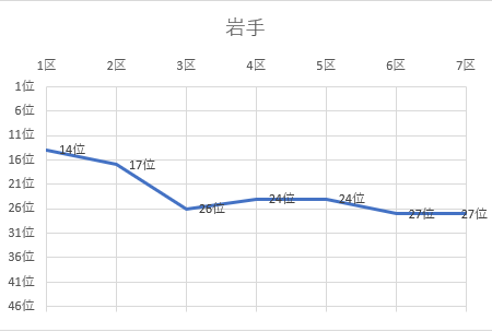 | 7区 | 13.0㎞ | 0:39:19 | 岩田 拓海(30) | JFEスチール | 41位 | 2:24:33 | 44位 |