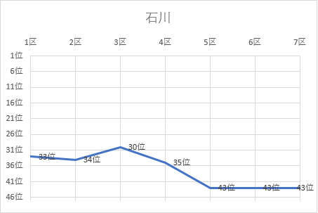 | 6区 | 3.0㎞ | 0:09:11 | 桜井 遼(15) | 金沢学院中(中3) | 40位 | 1:45:14 | 43位 |