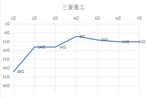 (実業団別結果、順位推移グラフ)