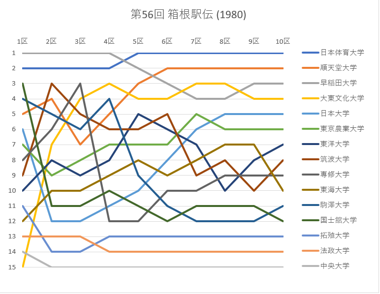 ※実際には中央大学が7、8区の選手のの届出ミスにより、監督会議で7、8区の区間記録、復路及び総合の順位、記録が無効となっています。開催日:1980年(昭和55年)1月2、3日