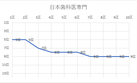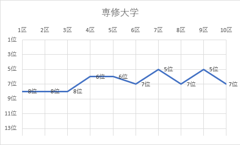 1.日本大学 2.早稲田大学 3.中央大学 4.慶應義塾大学 5.法政大学 6.東京文理科大学 7.専修大学 8.明治大学 9.日本歯科医専門 10.拓殖大学 11.東洋大学 12.立教大学 13.東京農業大学大学 14.横浜専門学校