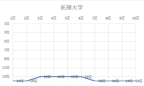 1.中央大学 2.早稲田大学 3.日本大学 4.明治大学 5.東京教育大学 6.専修大学 7.立教大学 8.東京農業大学 9.東洋大学 10.神奈川大学 11.横浜国立大学 12.法政大学 13.日本体育大学 14.拓殖大学
