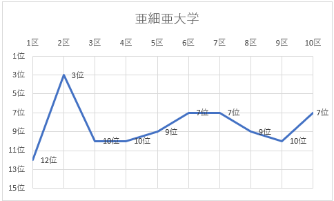 1.駒澤大学 2.順天堂大学 3.早稲田大学 4.中央大学 5.大東文化大学 6.神奈川大学 7.亜細亜大学 8.帝京大学 9.山梨学院大学 10.日本大学 11.日本体育大学 12.関東学院大学 13.専修大学 14.東海大学 15.法政大学