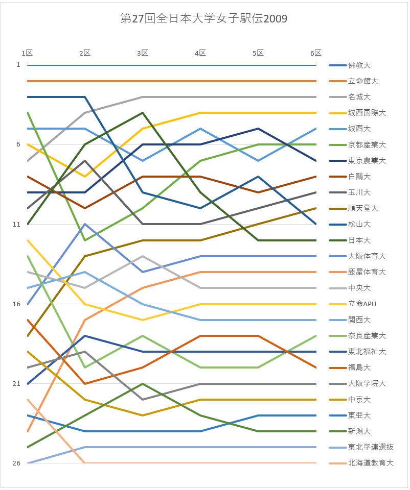 | 順位 | 大学 | 1区 | 2区 | 3区 | 4区 | 5区 | 6区 |