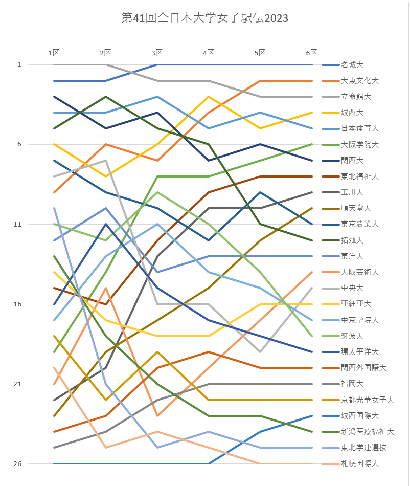 | 6 | 1:41:39 | 関西大 | 関 西 | 磯野 美空 | 4 | 0:30:45 | 8 | 7→6 | ↑1 |
