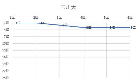 | 6区 | 9.1㎞ | 0:30:44 | 高橋 ゆかり | 4年 | 3位 | 2:13:16 | 5位 |