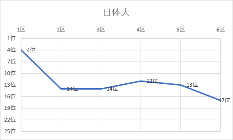 | 5区 | 4.0㎞ | 0:13:56 | 落丸 尚未 | 2年 | 7位 | 1:42:32 | 6位 |