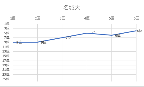 | 6区 | 7.6㎞ | 0:25:35 | 髙橋 葵 | 3年 | 4位 | 2:05:41 | 3位 |