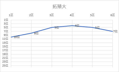 | 6区 | 7.6㎞ | 0:26:00 | 位田 明優 | 1年 | 7位 | 2:06:48 | 7位 |