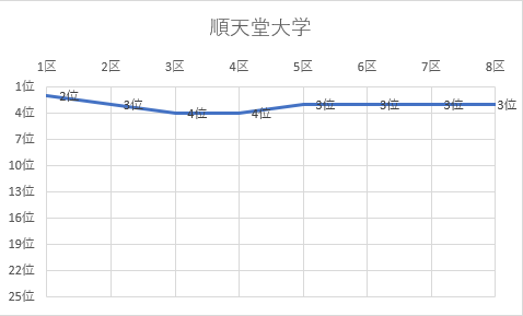 1位 駒澤大学 2位 山梨学院大学 3位 順天堂大学 4位 中央大学 5位 京都産業大学 6位 神奈川大学 7位 東海大学 8位 拓殖大学 9位 早稲田大学 10位 大東文化大学 11位 日本大学 12位 法政大学 13位 第一工業大学 14位 鹿屋体育大学 15位 広島経済大学 16位 名古屋商科 17位 関西大学 18位 徳山大学 19位 近畿大学 20位 福岡大学 21位 四日市大学 22位 大阪学院大学 23位 信州大学 24位 仙台大学 25位 札幌学院大学