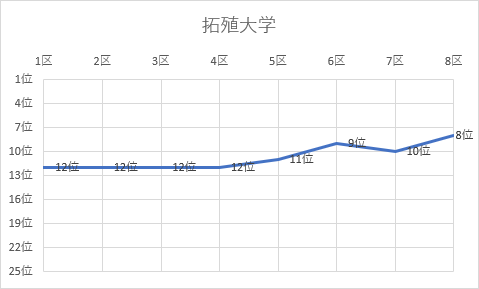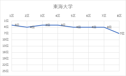 | 8区 | 19.7㎞ | 1:02:03 | 町野 走一 | 4 | 8位 | 5:25:37 | 6位 |