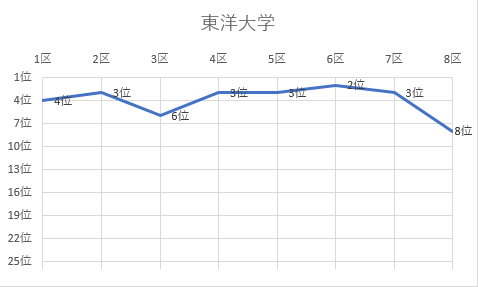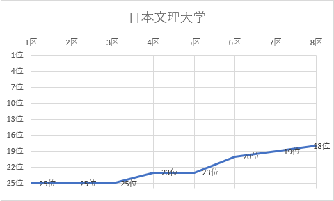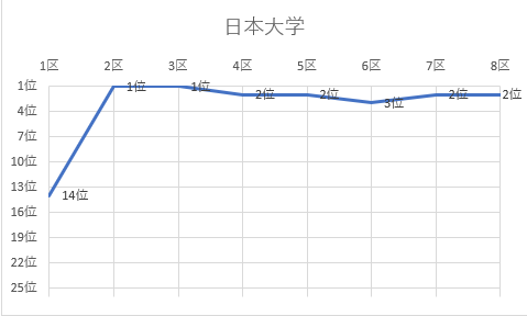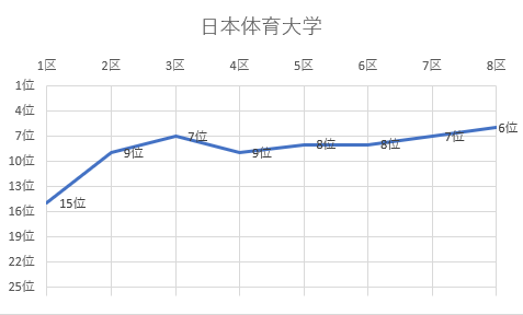 | 8区 | 19.7㎞ | 1:03:10 | 長沢 朋哉 | 3 | 17位 | 5:33:38 | 16位 |