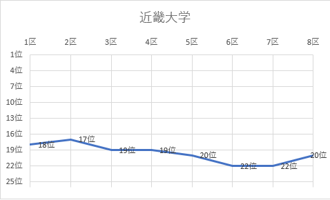 | 8区 | 19.7㎞ | 1:04:31 | 岡田 京大 | 3 | 20位 | 5:40:33 | 19位 |