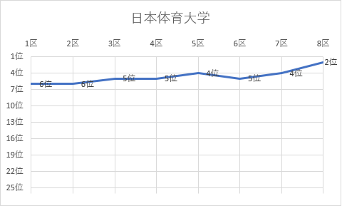 | 2区 | 13.2㎞ | 0:38:22 | 森 賢大 | 2 | 6位 | 1:21:56 | 6位 |