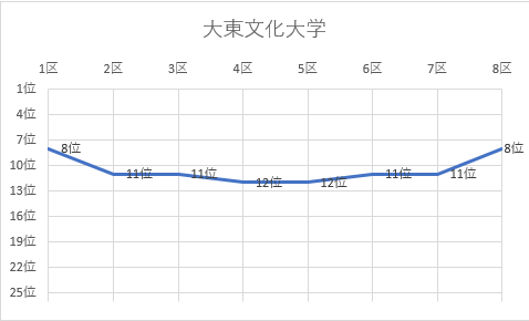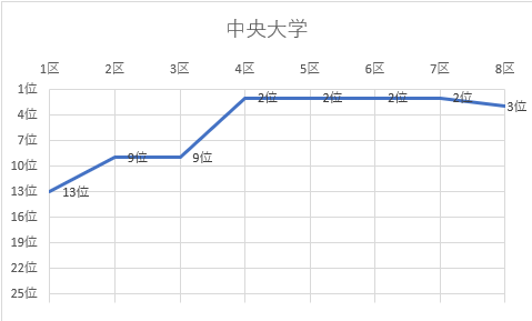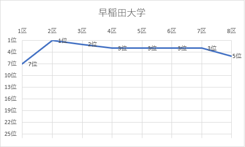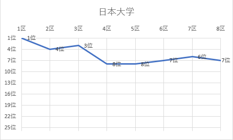 | 8区 | 19.7㎞ | 1:00:48 | 加藤 創大 | 2 | 8位 | 5:20:41 | 5位 |