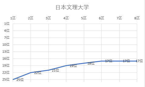 | 8区 | 19.7㎞ | 1:02:25 | 吉田 亮太 | 2 | 16位 | 5:35:51 | 17位 |