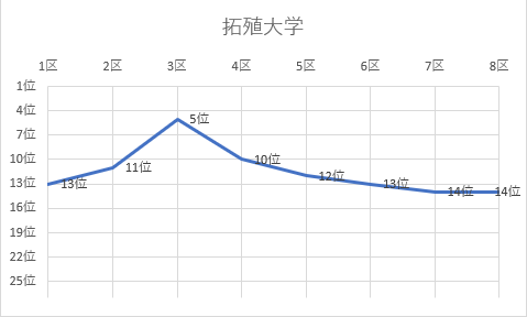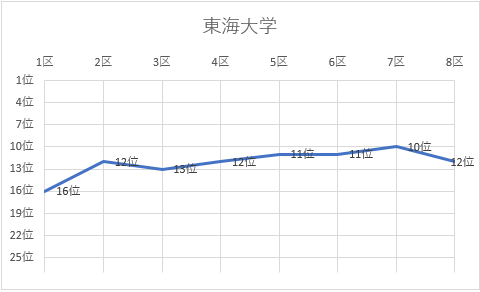 | 8区 | 19.7㎞ | 0:59:35 | 河田太一平 | 3 | 7位 | 5:17:39 | 9位 |