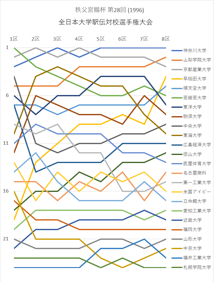 | 9 | 早稲田大学 | 4:28:16 | 上田 健治 | 1 | 0:37:49 | 11 | 8→9 | ↓1 |