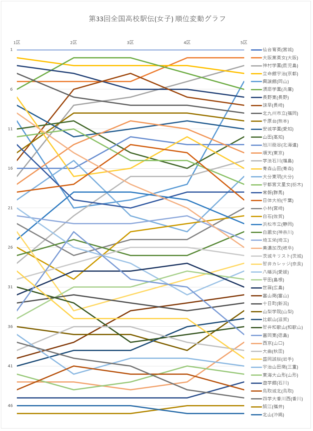 | 33 | 1:13:50 | 十日町 | 新潟 | 34→33 | 山田 寿々菜 | 1 | 0:17:43 | 37 |