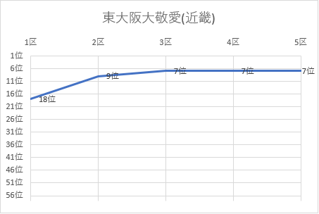 | 5区 | 5.0㎞ | 0:18:08 | 川野 莉央 | 3 | 54位 | 1:13:17 | 46位 |