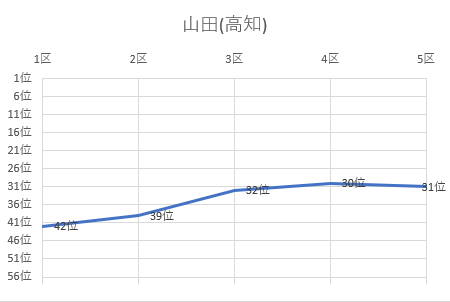 | 4区 | 3.0㎞ | 0:10:51 | 山口 奏奈 | 1 | 54位 | 0:58:50 | 55位 |