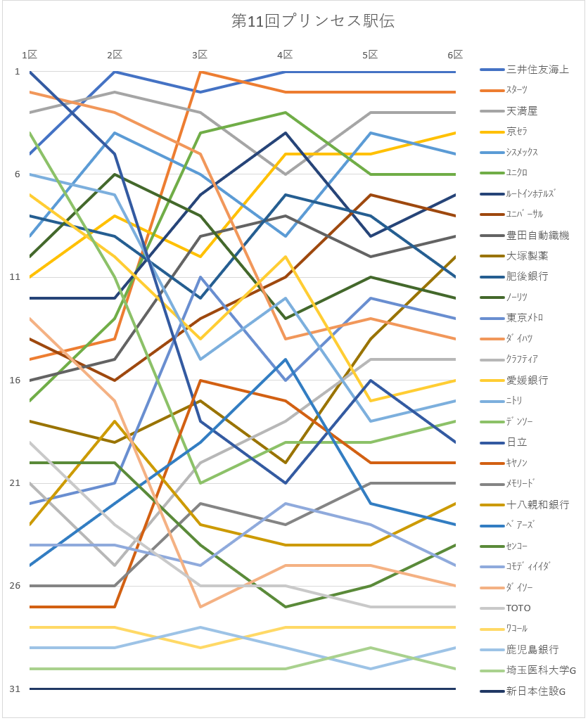 | 11 | 2:19:51 | 肥後銀行 | 九 州 | 高江 友姫 | 0:23:02 | 21 | 8→11 | ↓3 |
