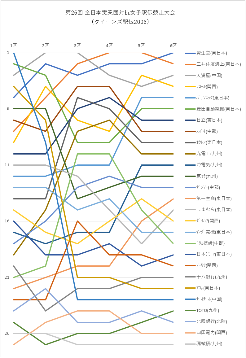 | 26 | 2:26:42 | 四国電力 | 関西 | 中内 真理 | 0:23:16 | 26 | 26→26 | →0 |