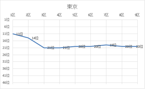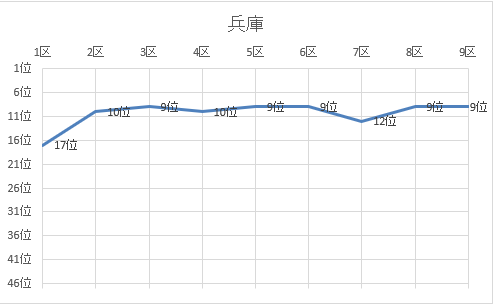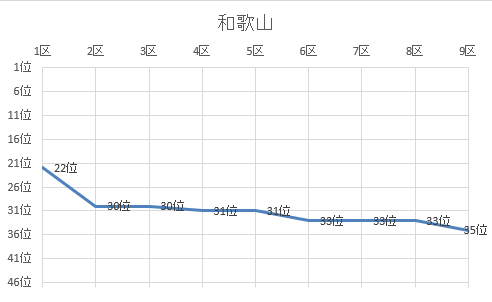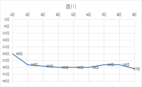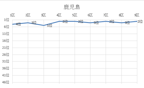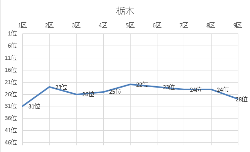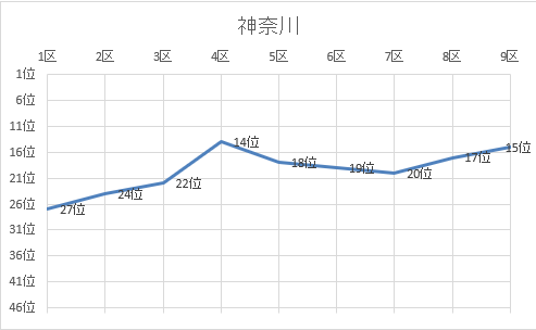 1位 京都 2位 鹿児島 3位 熊本 4位 宮崎 5位 千葉 6位 大阪 7位 山口 8位 福岡 9位 兵庫 10位 広島 11位 埼玉 12位 茨城 13位 群馬 14位 三重 15位 神奈川 16位 静岡 17位 愛知 18位 宮城 19位 石川 20位 東京 21位 長野 22位 滋賀 23位 佐賀 24位 北海道 25位 富山 26位 鳥取 27位 福井 28位 栃木 29位 岐阜 30位 長崎 31位 岡山 32位 愛媛 33位 福島 34位 大分 35位 和歌山 36位 青森 37位 香川 38位 島根 39位 新潟 40位 山形 41位 岩手 42位 奈良 43位 高知 44位 秋田 45位 沖縄 46位 徳島 47位 山梨