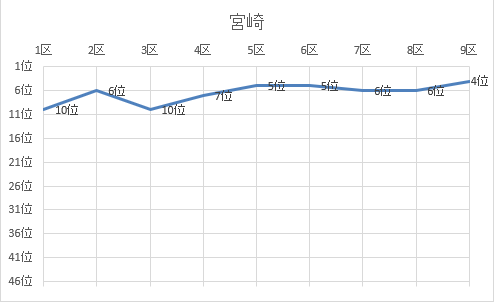 | 2区 | 4.0㎞ | 0:13:11 | 岩下 里美 | 沖電気宮崎 | 4位 | 0:33:31 | 6位 |