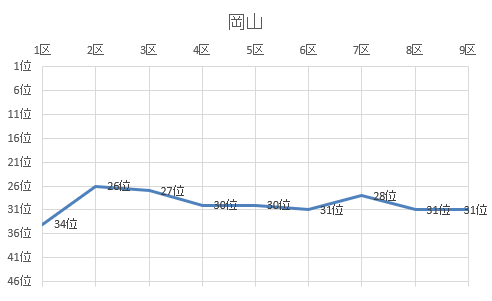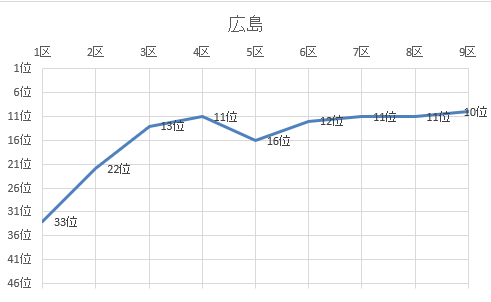 | 8区 | 3.0㎞ | 0:10:27 | 山根 一恵 | 岩国中 | 15位 | 1:49:45 | 12位 |