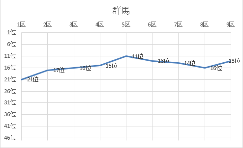 | 7区 | 4.0㎞ | 0:15:36 | 柳田 泰代 | 富岡東高 | 47位 | 1:49:53 | 46位 |