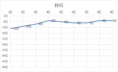 1位 神奈川 2位 兵庫 3位 大阪 4位 千葉 5位 静岡 6位 愛知 7位 群馬 8位 東京 9位 京都 10位 岡山 11位 鹿児島 12位 福岡 13位 長野 14位 三重 15位 埼玉 16位 長崎 17位 福島 18位 広島 19位 茨城 20位 岐阜 21位 山形 22位 栃木 23位 大分 24位 新潟 25位 愛媛 26位 富山 27位 岩手 28位 滋賀 29位 島根 30位 山梨 31位 宮崎 32位 和歌山 33位 熊本 34位 徳島 35位 佐賀 36位 鳥取 37位 北海道 38位 高知 39位 宮城 40位 福井 41位 石川 42位 青森 43位 山口 44位 秋田 45位 香川 46位 奈良 47位 沖縄